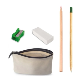 *Bez Kalemlik *Tohumlu Kurşun Kalem *Kırmızı Kurşun Kalem *Silgi *Kalemtraş *Baskı: Serigrafi, Transfer